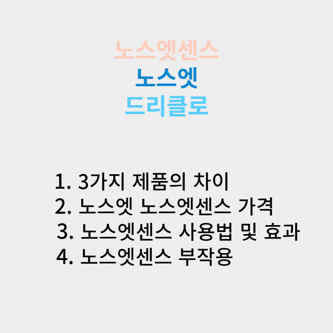 따라서 보통 여성분들이나 피부가 민감하신 분들이 노스엣센스를 사용하고 있습니다. 효과 같은 경우에는 아무래도 더 많은 함량이 들어있는 노스엣과 드리클로의 효과가 더 좋겠죠?