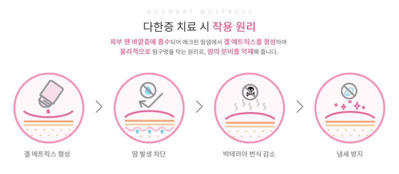 이 3가지의 제품들은 모두 땀 분비를 억제해주는 효과를 가지고 있으며, 주로 겨드랑이, 손, 발의 땀과 다한증을 개선해주는 효과를 지니고 있습니다. 냄새의 원인인 땀 분비를 억제해주면 냄새 때문에 매일같이 뿌려대던 데오드란트도 안 뿌려도 되고 스트레스가 줄어들 것이라는 생각이 듭니다!